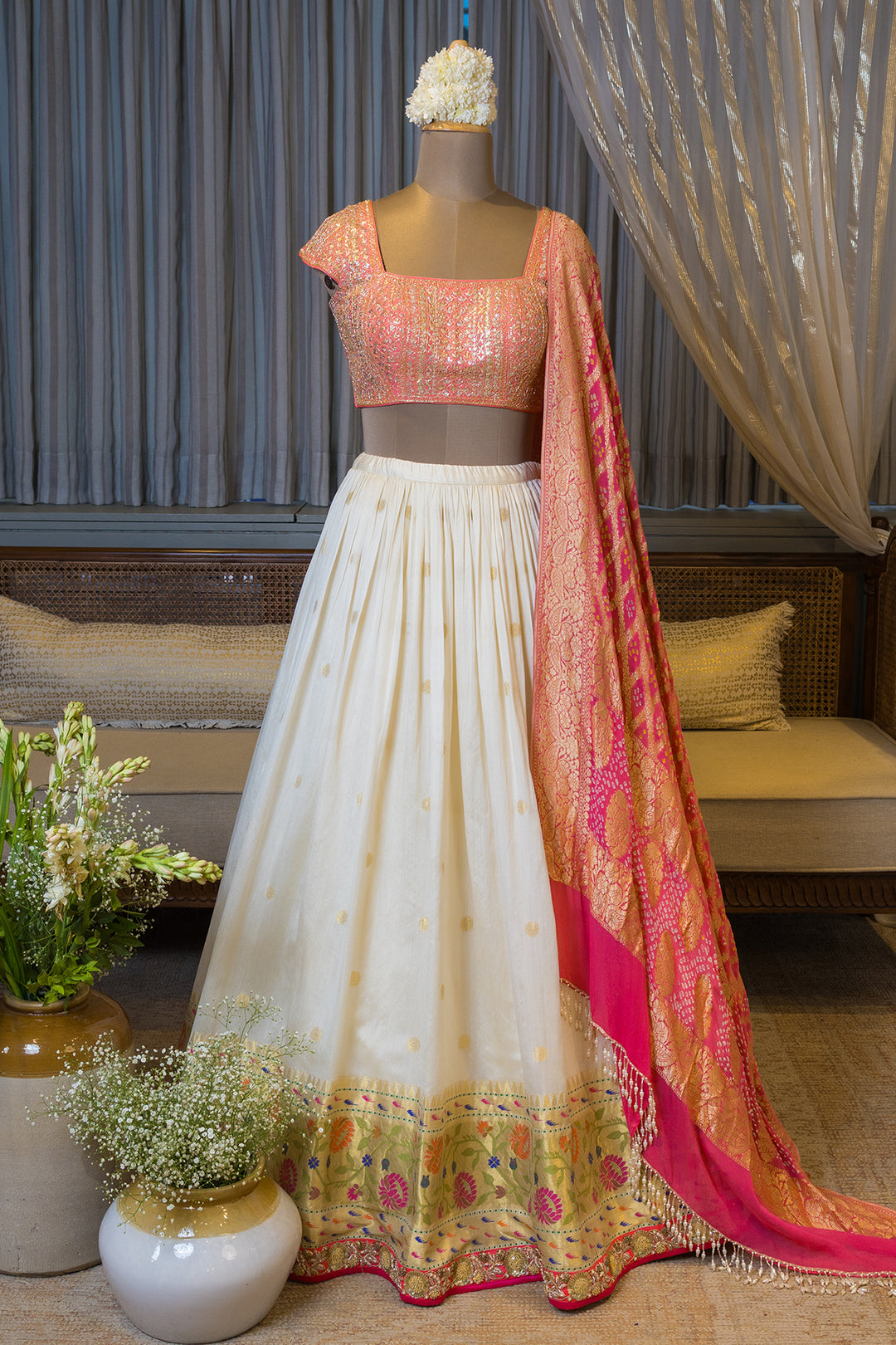 dip dye skirt with bandhej dupatta