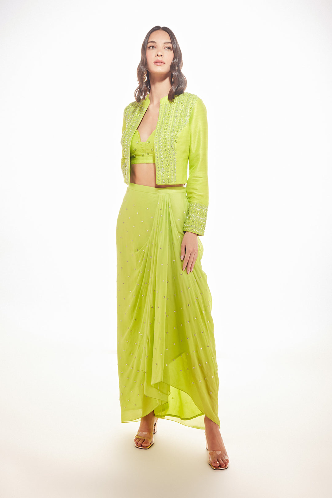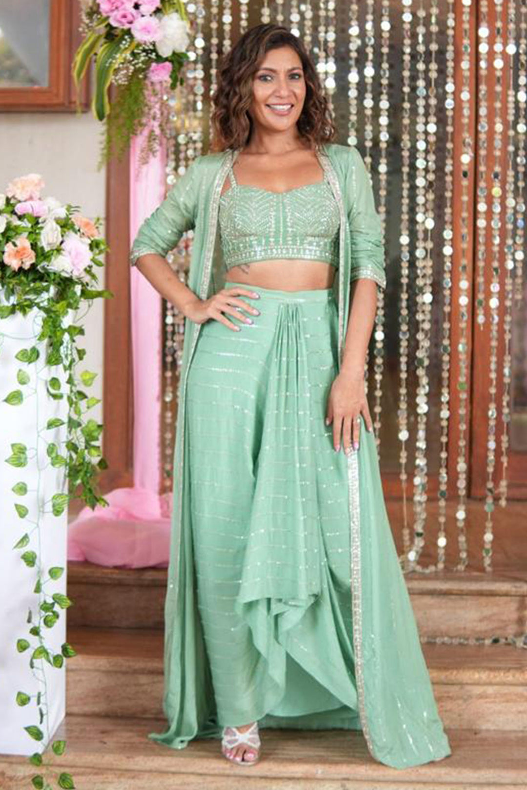 Laxmi Rai In Gul Drape Skirt And Jacket