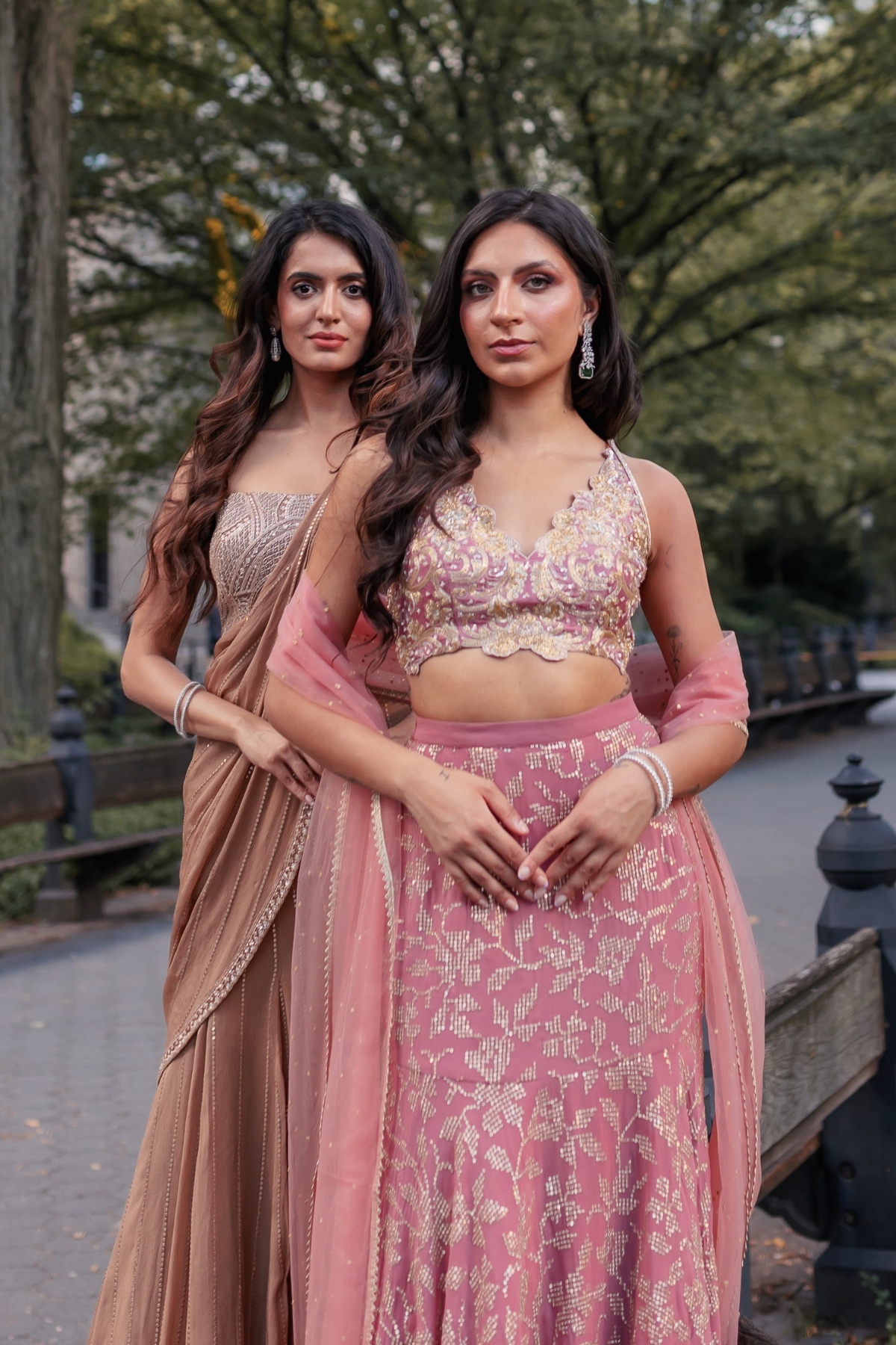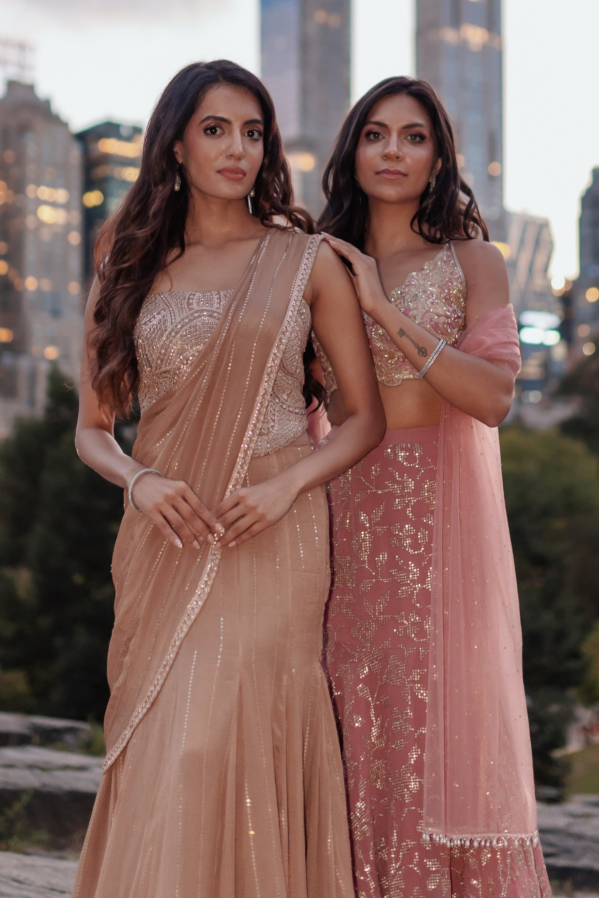 On The Model: XS, 5 Feet 10 Inches Neckline - Spaghetti Strap , Neck depth - 10.5 inches Blouse Length- 14 inches Skirt Length - 44 inches
